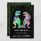 Funny Dinosaur Wedding Save the Date T-Rex Bride and Groom with Woodland Foliage