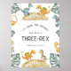 Modern and Clean Design, Cute Watercolor He's a Three-Rex Dinosaur Birthday Party Boy's 3rd Birthday Party Ilustrated Personalized Poster.