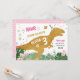 Dinosaur Three-Rex Dino Girl Pink Gold Birthday Invitation