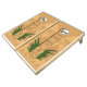 Natural Wood Cornhole Set, Yellow and Purple bags