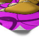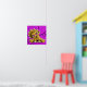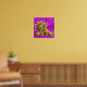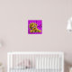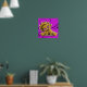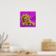 A cute baby triceratops with her head tilted smiling at you. Shown with a floral design on a purple background. Size of poster is 16" x 16".