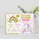 The playful headline “Stomp Over for a Magical Birthday Party” perfectly blends dinosaur adventure with unicorn magic, making this invitation both fun and heart-warming. Soft pastel colors, gold accents, and charming illustrations create a beautiful and balanced look that kids and parents will love.