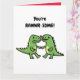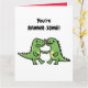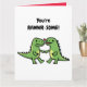 Dinosaur valentines greeting card features green dino couple in love with phrase You`re rawwr-some