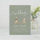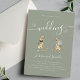 Set against a stylish sage green background, this invitation pairs elegant script fonts with adorable dinosaur artwork for a lighthearted yet refined look. It’s perfect for non-traditional couples, museum or destination weddings, or anyone planning a Jurassic-inspired celebration filled with fun and personality.