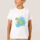 A cute illustration of a green Tyrannosaurus Rex dinosaur with blue paint splashes in the background. Ideal birthday gift, nursery decor, kids room art, home decor, back to school or any other special occasion.