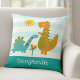Dinosaurs Baby Boy Turquoise Stripes Kawaii Name Throw Pillow