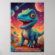 This dinosaur could belong to an imagined species from a cosmic realm, where flora and fauna thrive in vibrant, psychedelic ecosystems, blending prehistoric life with a space-age twist. Its demeanour exudes innocence and wonder, as though it’s exploring its fantastical universe for the first time.