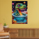 This dinosaur could belong to an imagined species from a cosmic realm, where flora and fauna thrive in vibrant, psychedelic ecosystems, blending prehistoric life with a space-age twist. Its demeanour exudes innocence and wonder, as though it’s exploring its fantastical universe for the first time.