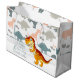 A sweet happy Birthday bag personalized gift bag for a person who loves dinosaurs. Click the "Customize it!" button to change the text size, text color, font style and more!