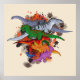 This colorful prehistoric design includes Tyrannosaurus Rex, Velociraptor, Giganotosaurus, Allosaurus, Apatosaurus, Pteranodon, Triceratops, and Parasaurolophus. It can be customized and personalized by adding your own text.