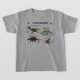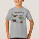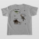7 dinosaurs on this fantastic t-shirt designed by a 3-yr old boy. All these favorite dinosaurs include pictures and measurements.