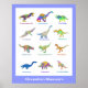 12 watercolor Dinosaurs in beautiful colorful psychedelic bright colors with their dino names, the perfect educational design for the girl who loves dinosaurs. Periwinkle and white boarder with personalized name plate. This fun palaeontology pattern includes all the prehistoric jurassic era favourites including T. rex or tyrannosaurus, velociraptors, brachiosaurus, brontosaurus, stegosaurus, the flying pterodactyl, triceratops, spinosaurus, ankylosaurus, plesiosaurs, parasaurolophus and pachycephalosaurus a fun spelling challenge for any child. Original artwork by artist Catherine Sweetman