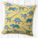 Painting of blue dinosaurs, Tyrannosaurus rex, Spinosaurus, Stegosaurus, Diplodocus and Triceratops on a sunshine yellow background. Eek!