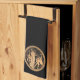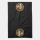 16” x 24” kitchen towel with an ancient black and gold image, on both ends, of Dionysus, god of wine and wine making and ritual madness, and the satyrs on black.