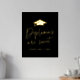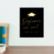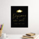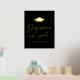 Modern graduation party sign featuring an illustration of a gold foil graduation cap at the top with "Diplomas are sweet" in a handwritten gold foil script on a black background. Personalize the black and gold foil graduation sign with your custom text (currently shown with "please take a treat"). The foil graduation party sign is perfect for displaying on a table with dessert or candy graduation party favors for your guests.