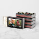 Customize with two photos and text message. Border color, thickness and background color are all editable.