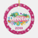 Beautiful pink snowflake Director Christmas ornament makes a perfect stocking stuffer for the Music Director, Choir Director, Marching Band Director or the Director of a theater production, and has snowflake holiday background with swirls and stars Director quote.