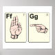 These "F" and "G" sign language flash cards certainly send a hand gesture message.