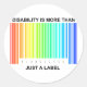 Disability is more than a label. A rainbow barcode represents the diversity of disabled people. A label of disability - shorthand for a medical condition, or a self-constraining statement of difference?