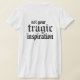My overall review is that the T-shirt is nice, it fits true to size however the font is significantly smaller than advertised and you can't read it. The printing is unreadable and there is a strain to read it. It does not look like the advertised product. Maybe the shirt color is darker or a larger more visible font should have been used. Photos with and without flash and font is barely legible.