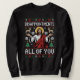 This hilarious design is a perfect parody of the Ugly Christmas Sweater aesthetic. The artwork features the central figure of Jesus Christ with outstretched arms, surrounded by classic holiday elements rendered in a pixel art or knit pattern style, including reindeer, snowflakes, and small Christmas trees. The entire image is framed by the highly sarcastic quote: "DISAPPOINTMENTS ALL OF YOU." This design combines irreverent religious humor with the festive season, making it an ideal piece for those who appreciate dark humor, irony, and anti-holiday sentiments.