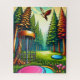 Retro looking disc golf Couse with and Eagle soaring above pine trees ai art.