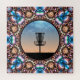 Enjoy this colorful abstract mandala design, featuring the silhouette of a disc golf basket.