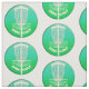 An illustration of a green Frisbee and a disc golf cage. A design for disc golfers.