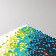 Disc golf art with a cool gaming vibes pixel art disc gold course in blue and green hues.