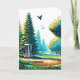 Disc golf happy birthday card with funny disc golf pun and a cool gaming vibes pixel art disc golf course in blue and green hues.
