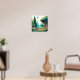 Disc golf art with a cool gaming vibes pixel art disc gold course in blue and green hues.