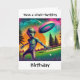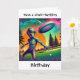 Alien playing disc golf in the woods and mountains. Fun ai art disc golf themed birthday card with lots of funny puns.