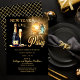 Disco and Champagne Black Gold New Years Eve Party Invitation