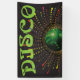 Disco dance party backdrop banner with a green disco ball, colorful light rays and the word Disco in a retro 70s font. Add your own text in white or any light color below the large word if you like.
