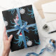 Fun novelty Christmas Wrapping Paper with a pattern of smiling, blue, octopus illustrations wearing Santa hats and holding disco balls on a black background.