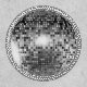 Various shades and tints of silver and gray simulate the mirrored surface of a disco ball