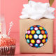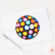 Round sticker with image of colorful lights emanating from a disco ball. See matching custom-cut vinyl sticker, confetti, favor bag, favor tag and wrapping paper. See the entire Disco 70s Sticker collection in the INVITES | Stickers & Labels section.