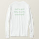 I love this shirt. I had written to the artist asking her if this picture was available on a shirt, and she wrote me back telling me where I could find the shirt. These shirts can be custom made to have a different saying. I loved this saying and went with it. The artist wrote me back later to tell me that she had seen my order go through. How's that for service? Pretty special. It's just as displayed. Perfect!