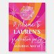 This customizable disco welcome sign is adorned with an iconic disco ball, set against a backdrop of pink and orange hues, embodying the energy and excitement of both a disco-themed party and a groovy graduation celebration. Whether it's for a high school disco graduation party, a groovy college grad party, or a sophisticated grad school graduation party, this custom disco sign sets the tone for a night of dancing, joy, and unforgettable memories.