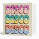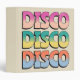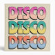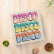 Colorful grunge retro style "Disco Disco Disco" text design with striped letters decoration