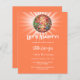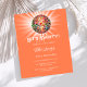 A girly and feminine 18th (or any age) party invitation. A coral, orange background color. Decorated with a colorful disco ball. Text: Let's Party! Personalize and add a name and party details. The name is written with a hand lettered style script.