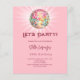A girly and feminine 18th (or any age) party invitation. A blush pink background color. Decorated with a colorful disco ball. Text: Let's Party! Personalize and add a name and party details. The name is written with a hand lettered style script.