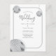 A disco-themed wedding invitation postcard in white, gray, and silver tones (non-foil). Have a fun wedding theme that can be as light-hearted or elegant as you like. Simply add your text, add this postcard to your cart, then have a wedding that is groovy.