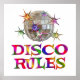 A disco lover knows that disco music and dancing is the best. Share your feelings with this colorful design with a disco ball, stars and the words - Disco Rules.