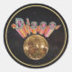 Round sticker to match our "Disco the Night Away" invitation with an image of a dazzling Disco ball and “Disco” in pink and yellow tubular letters in the night sky with a gold border. See matching custom-cut vinyl sticker, invitation, envelope, confetti, favor bag, favor tag, label and wrapping paper. See the entire Disco 70s Sticker collection in the INVITES | Stickers & Labels section.