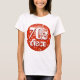 T-shirt with a fun and funky stylised "disco mirror tile look" printed pattern in shades of red and white, and 70s disco' in retro style text. Can be used as a background for your own text, images and ideas. Available in all style options. Please note this is a printed digital art image, it does not shine or contain real mirrors or glitter.
