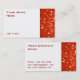 Business card with a glamorous stylised "disco mirror tile look" printed pattern in shades of red, and red text on a white background.. Can be used as a background for your own text, images and ideas. Please note this is a printed digital art image, it does not shine or contain real mirrors or glitter.