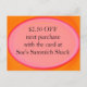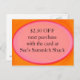 use this mail out postcard to save your custmers money on their next purchase with this mailable postcard discount coupon. Text is customizable to meet your needs for your next promotion