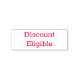 The text "Discount Eligible" or your own custom text set in red (or the color of your choosing) ink highlights this handy self-inking stamp.