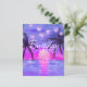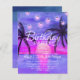 Purple Beach Sunset Birthday Invitations. Vibrant and bold invitations designed with a beautiful pink, blue and purple sunset, palm trees and light string accents. This sunset sweet sixteen invitation will be a fabulous introduction to your special day.
